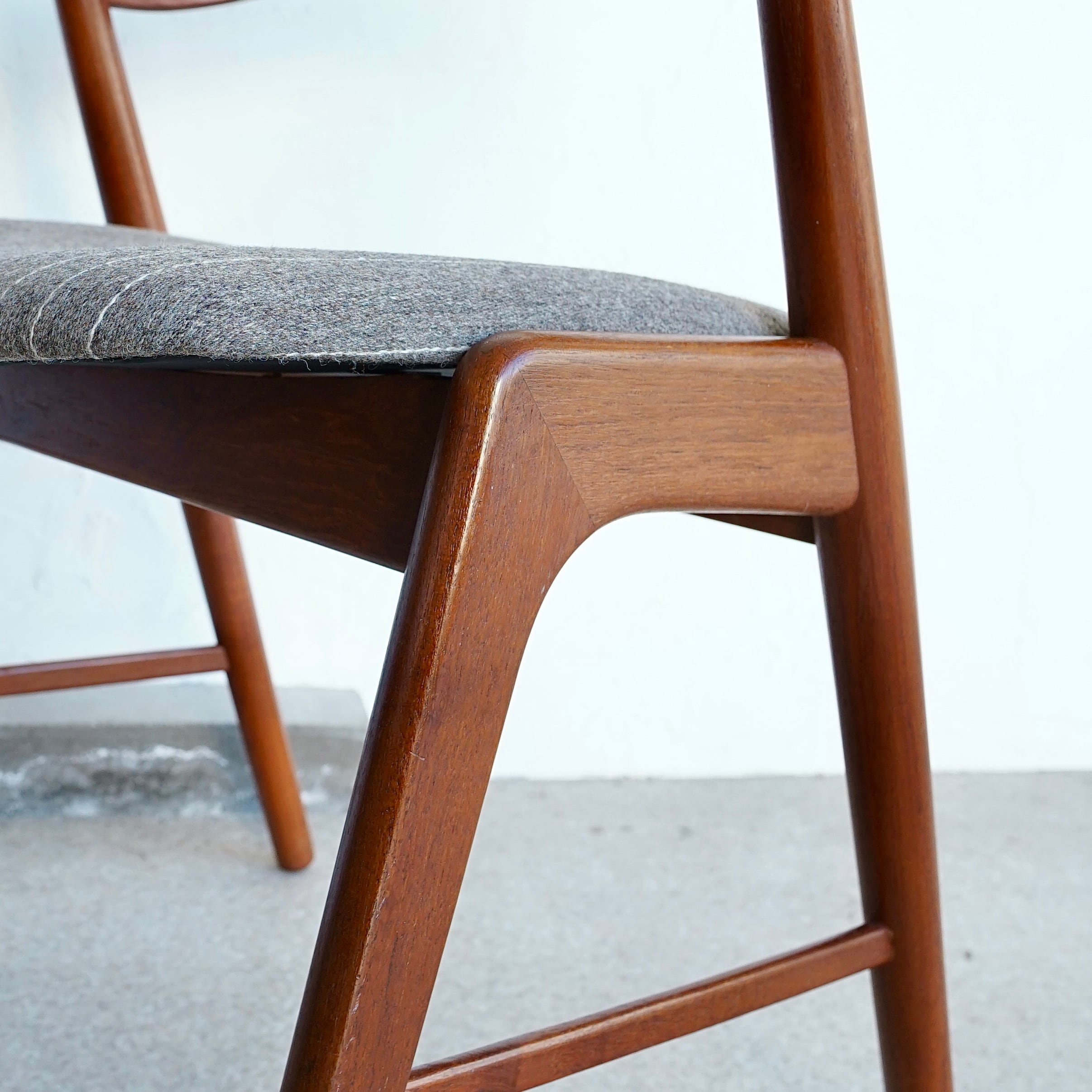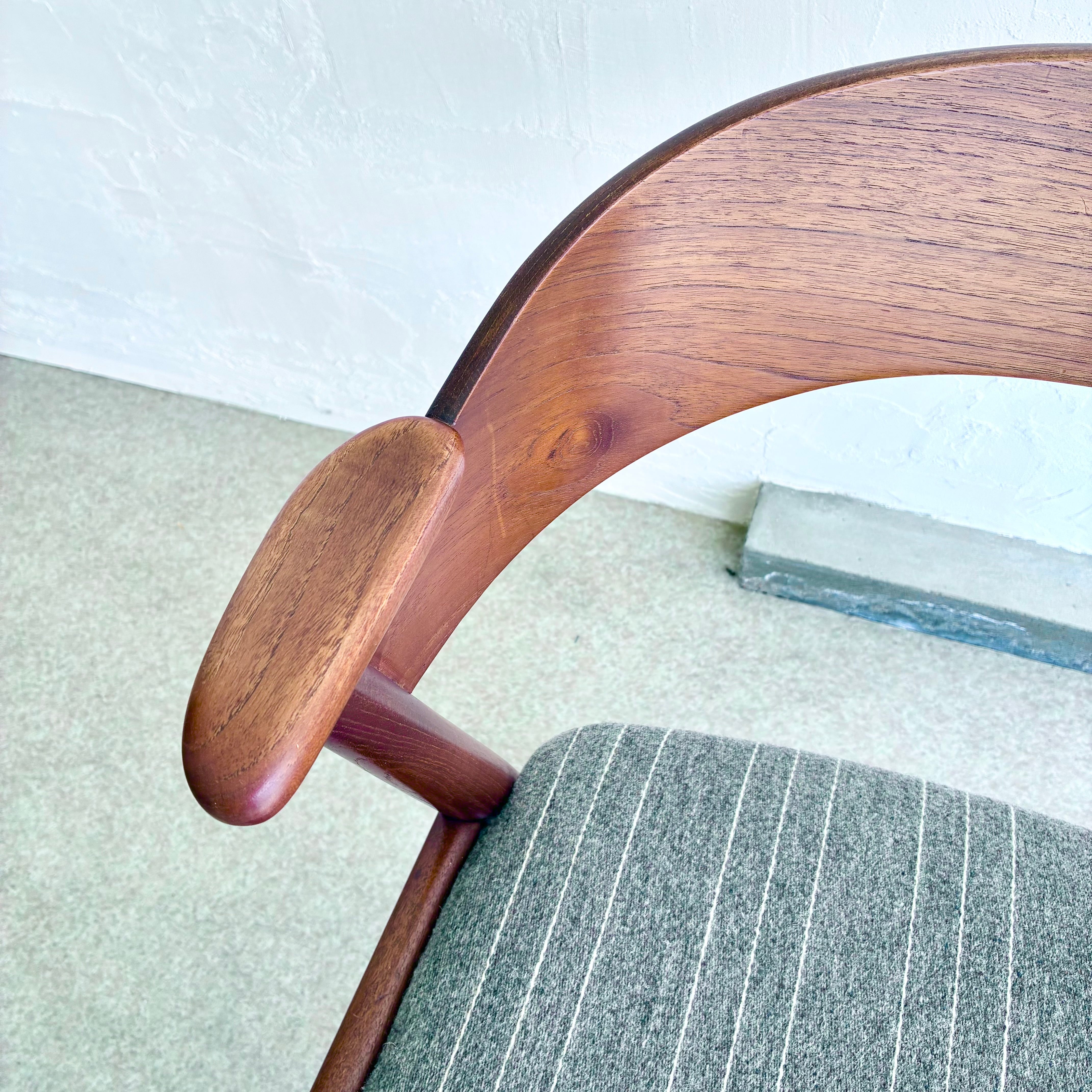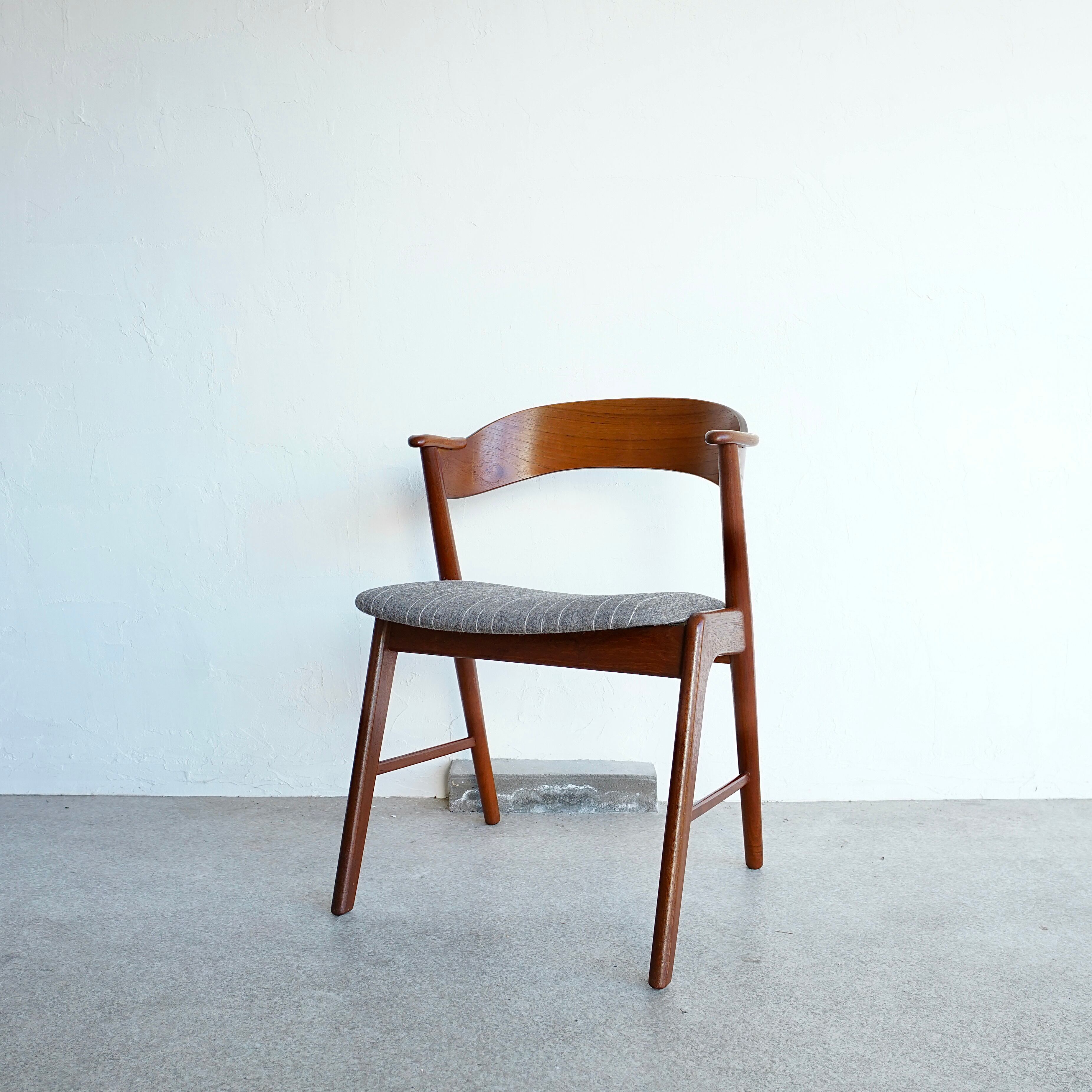 包み込むような背もたれのカーブや前脚から後脚へL 字型に繋がるフレームの構造、ネイルのような形をした小さなアームが特徴的で「カイ・クリスチャンセン」デザインの名作といえる作品です。