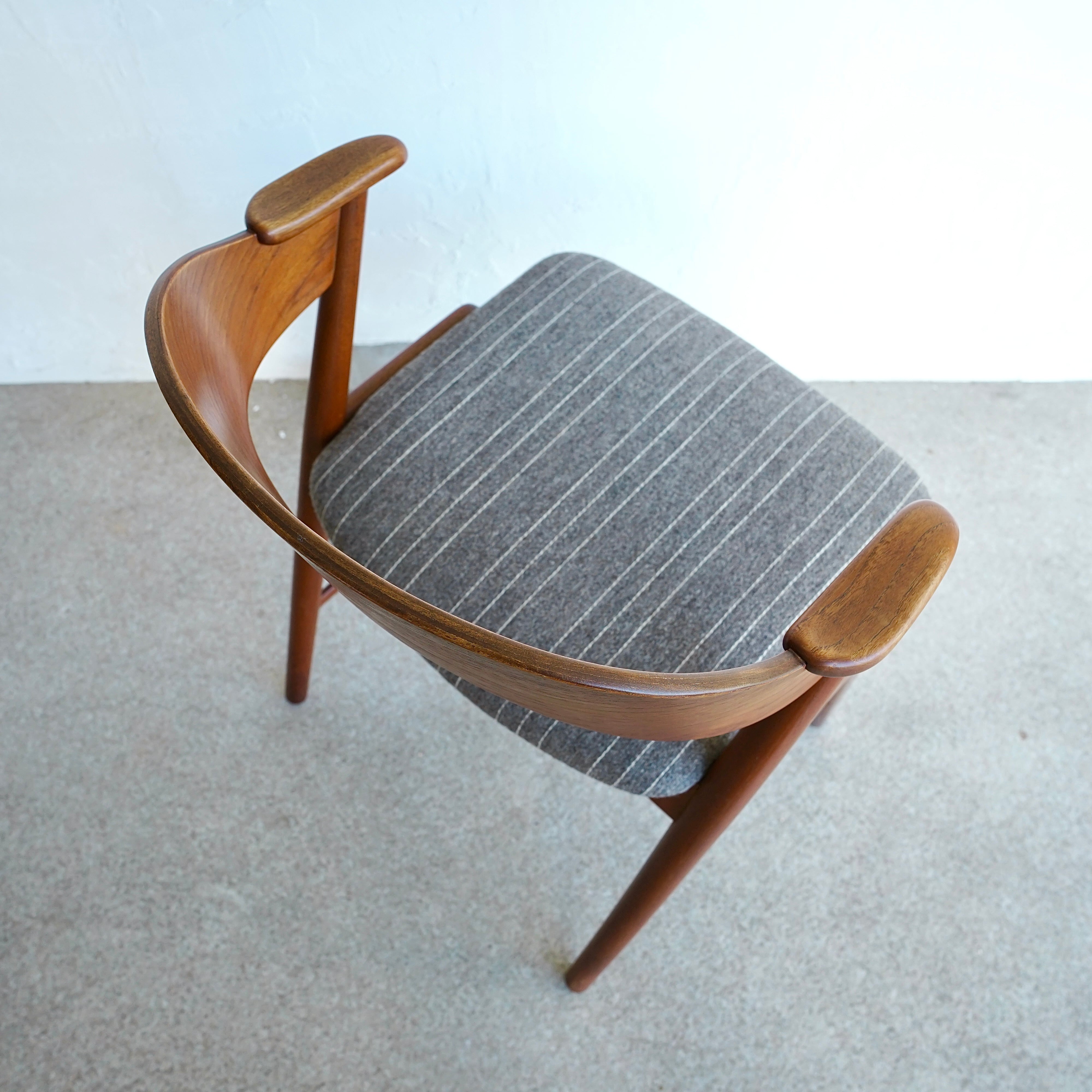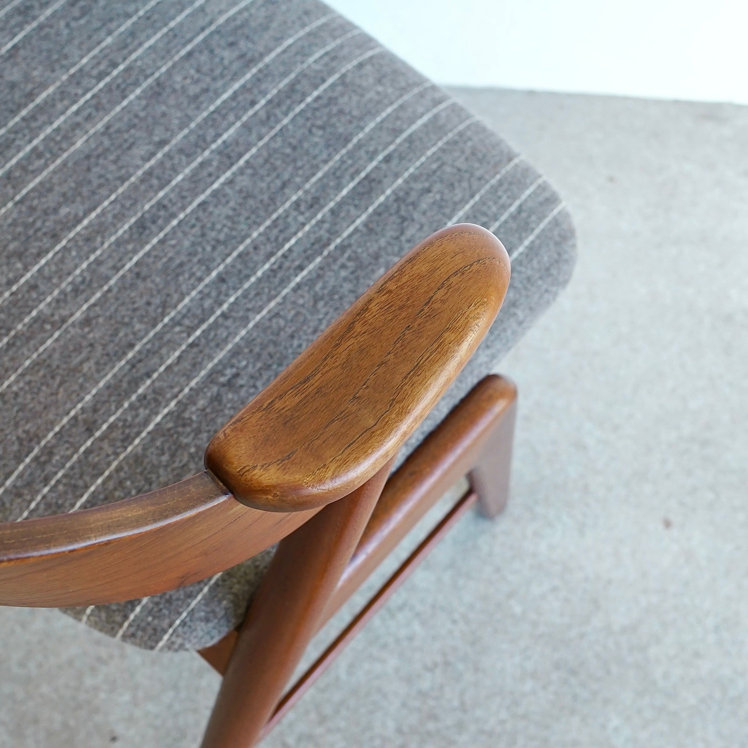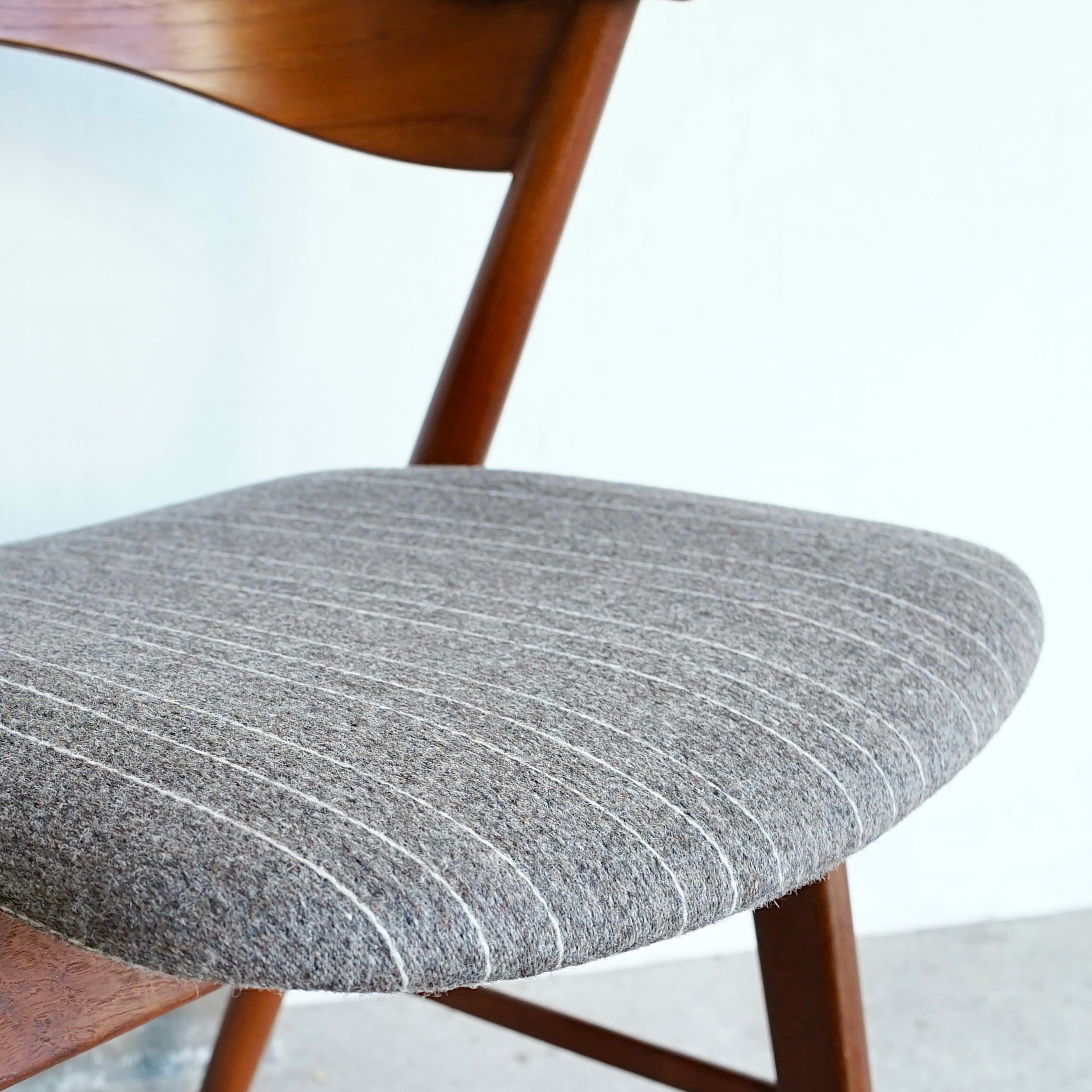 座面生地はデンマークのユトランド半島にある老舗生地メーカーKjellerup Vaeveri社(ケアロップヴァヴェリ)のSAMSØ(サムス)で張り替えをしております。繊細なラインを等間隔にはしらせたSAMSØ、ウール80%とコットン20%が織りなす、ほどよくさらっとした質感のクオリティ高い生地になります。