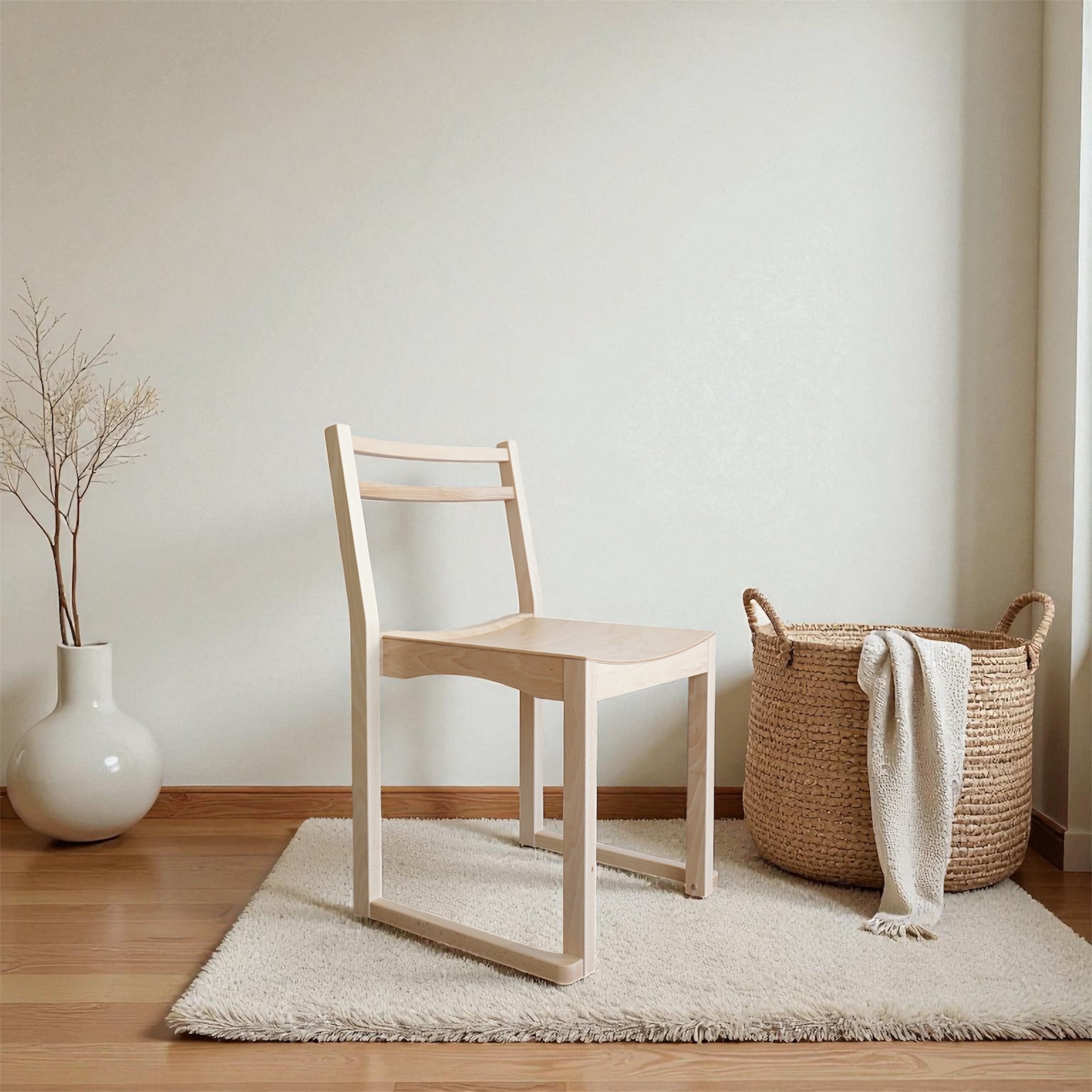 ビーチ材を丁寧に削り出し、なめらかな座面と端正なフォルムに仕上げています。