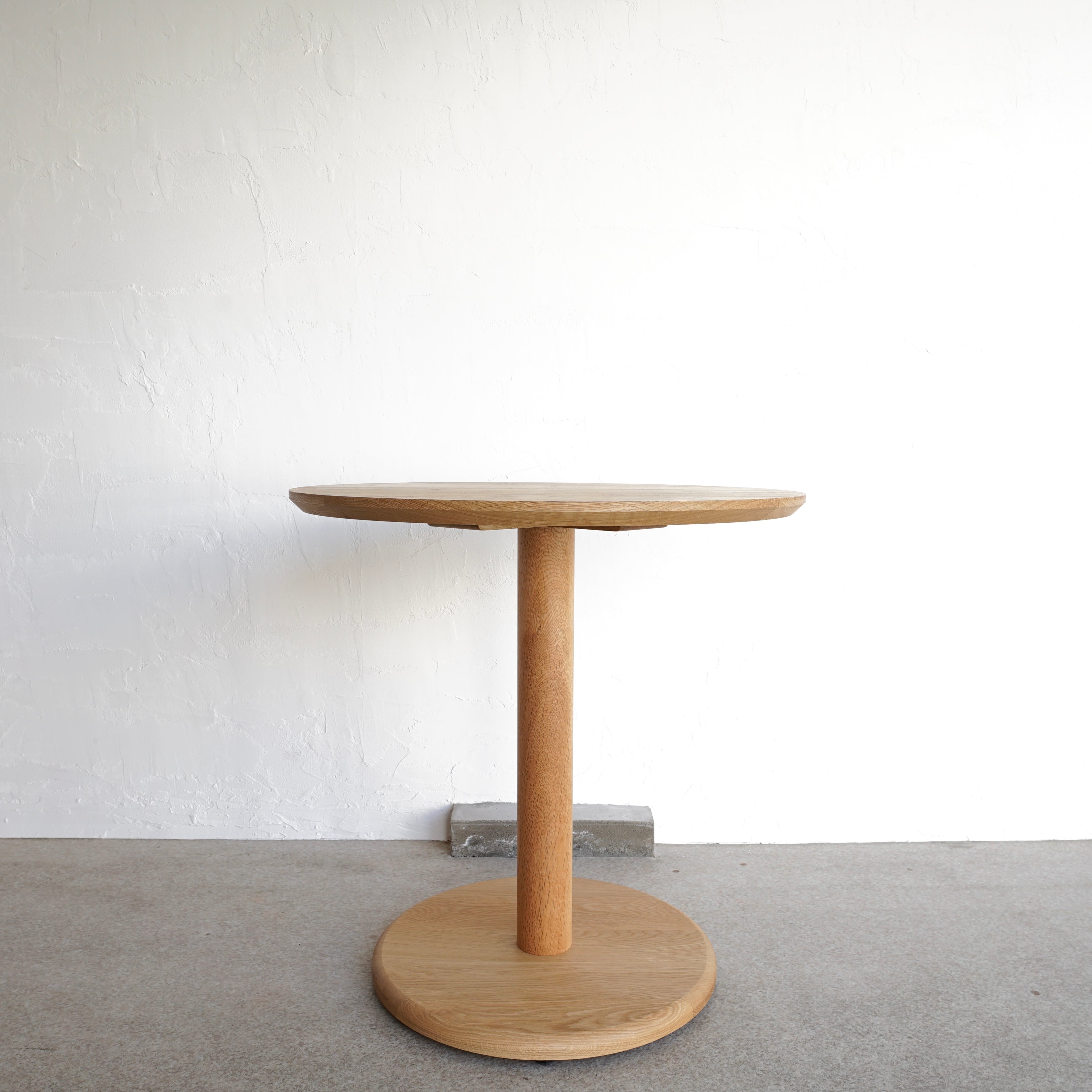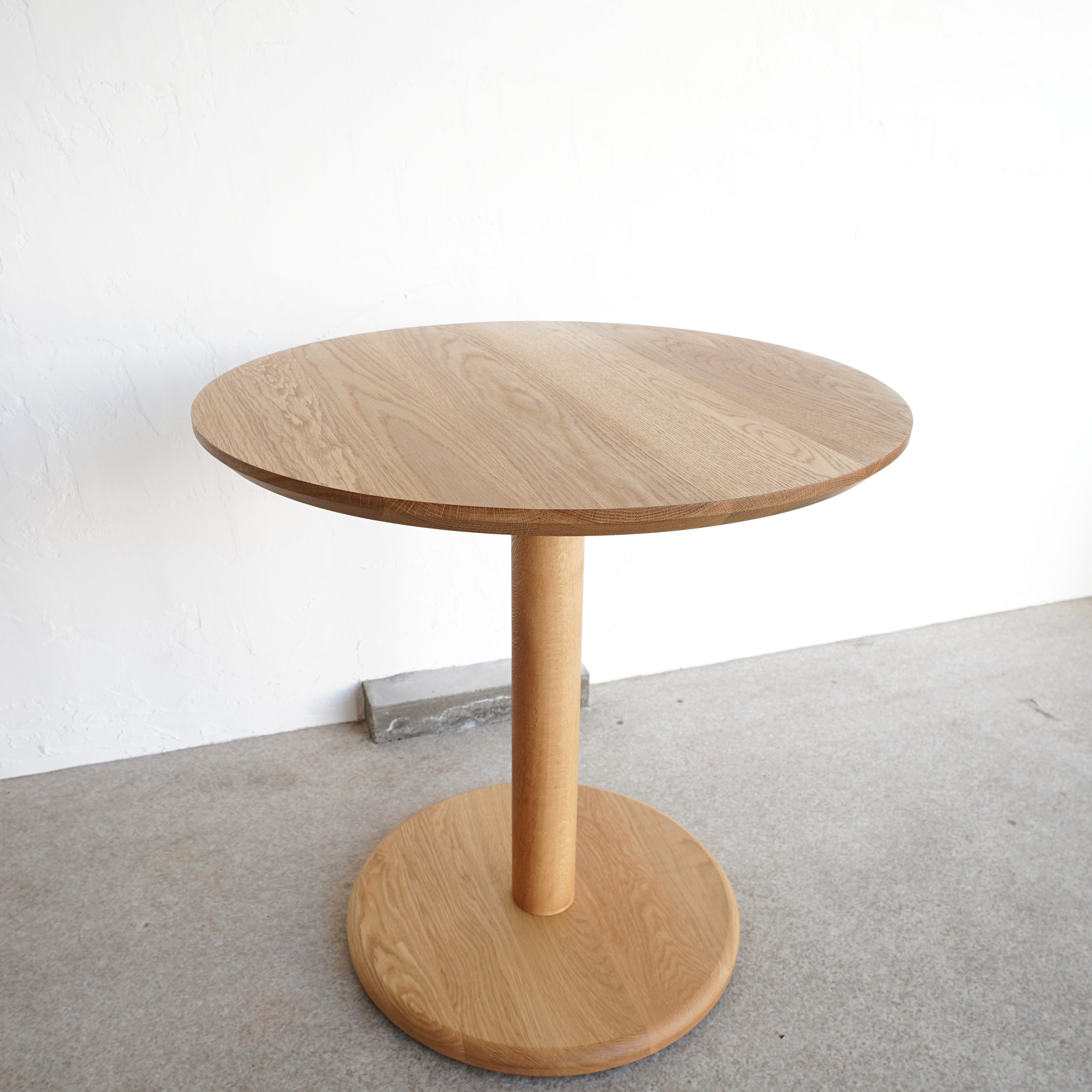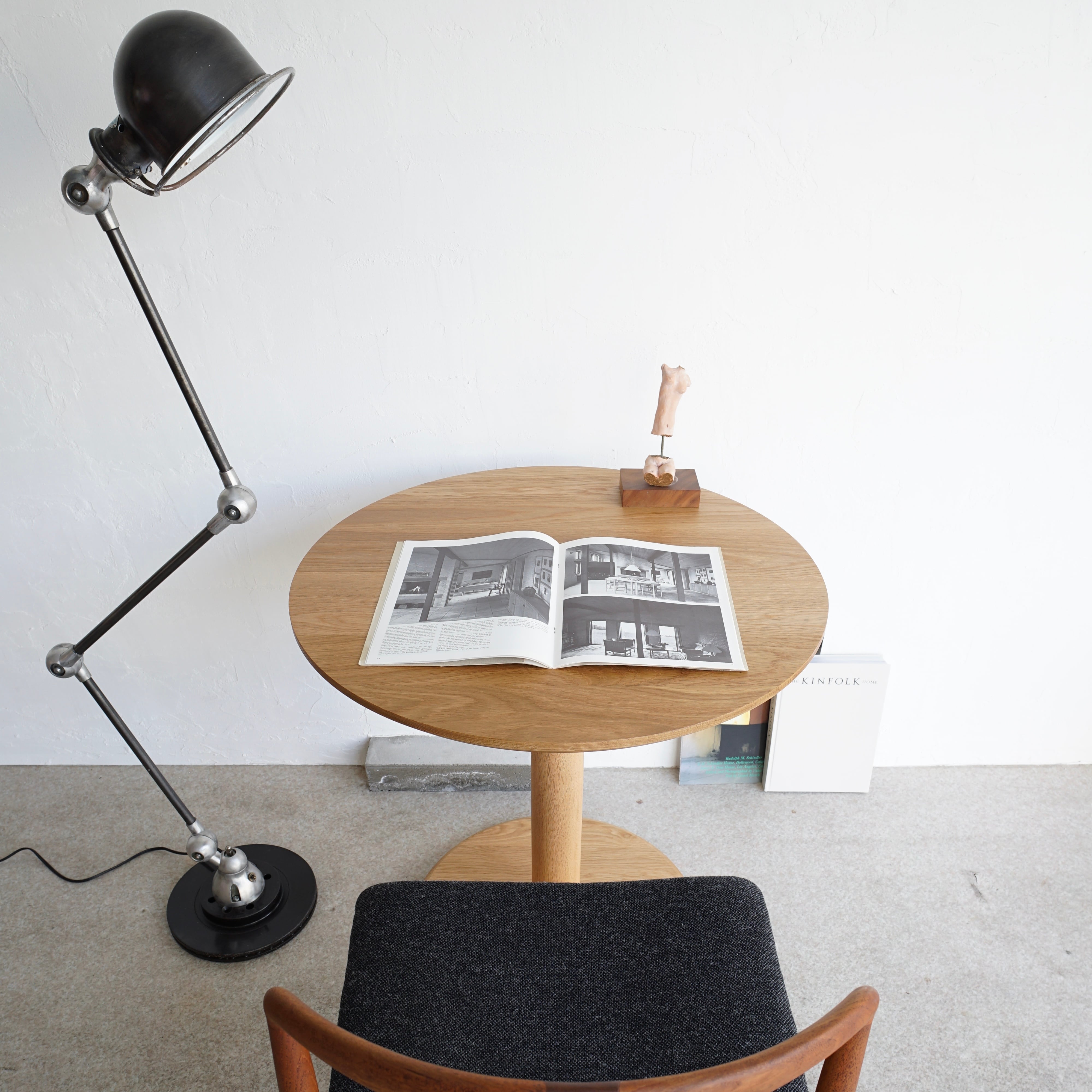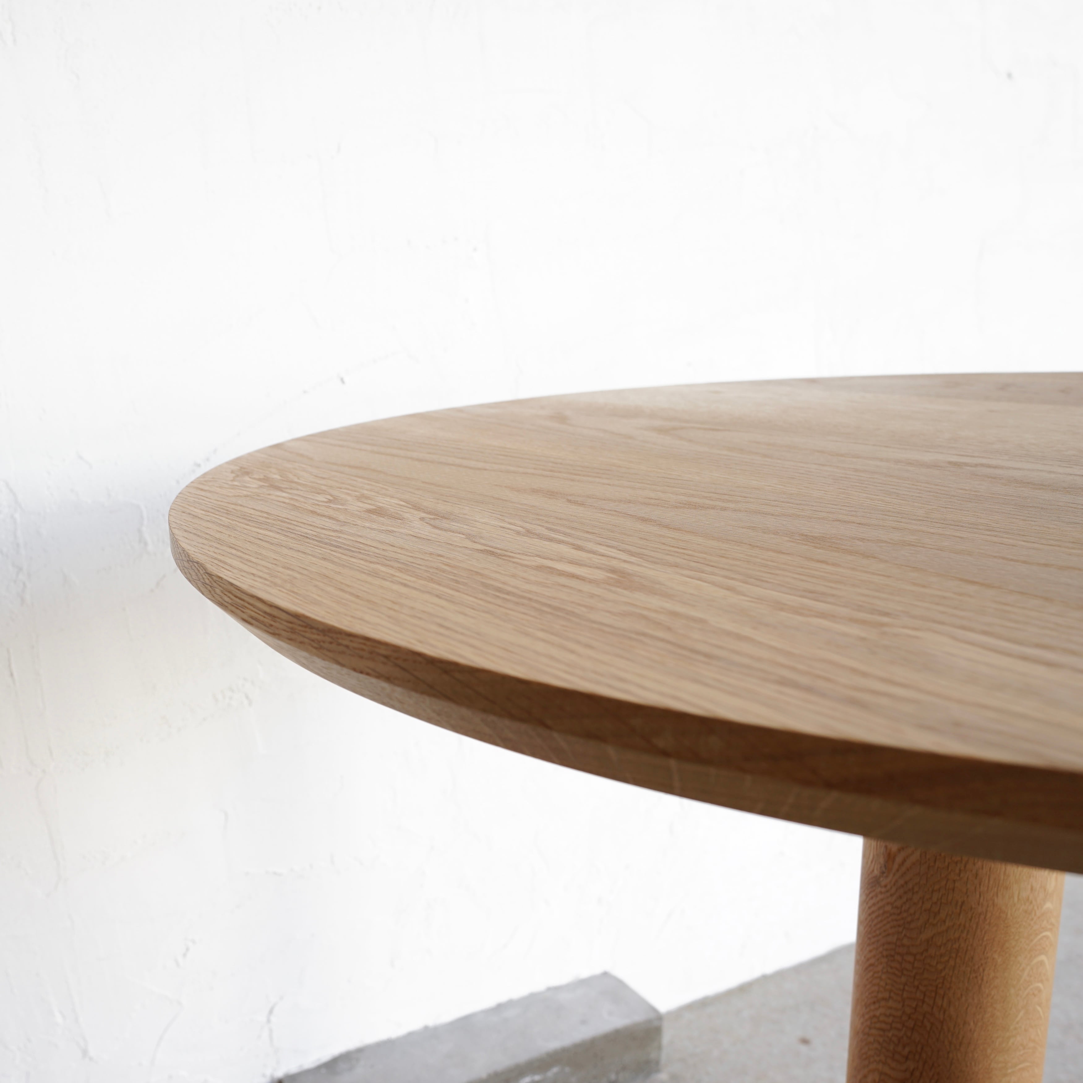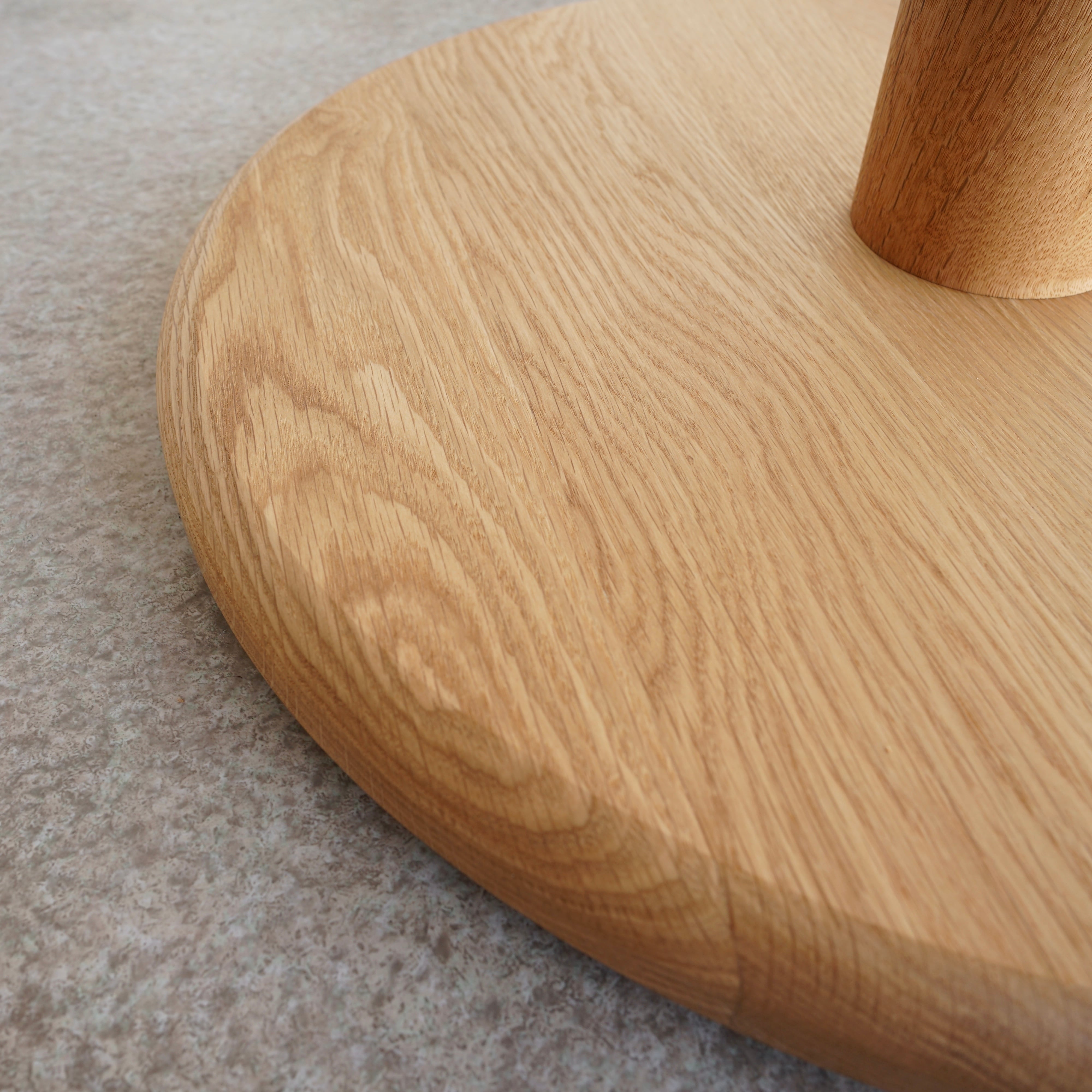 削り出したオーク無垢材の一本脚は、木目や素材感を十分に感じられる、存在感のあるデザイン。