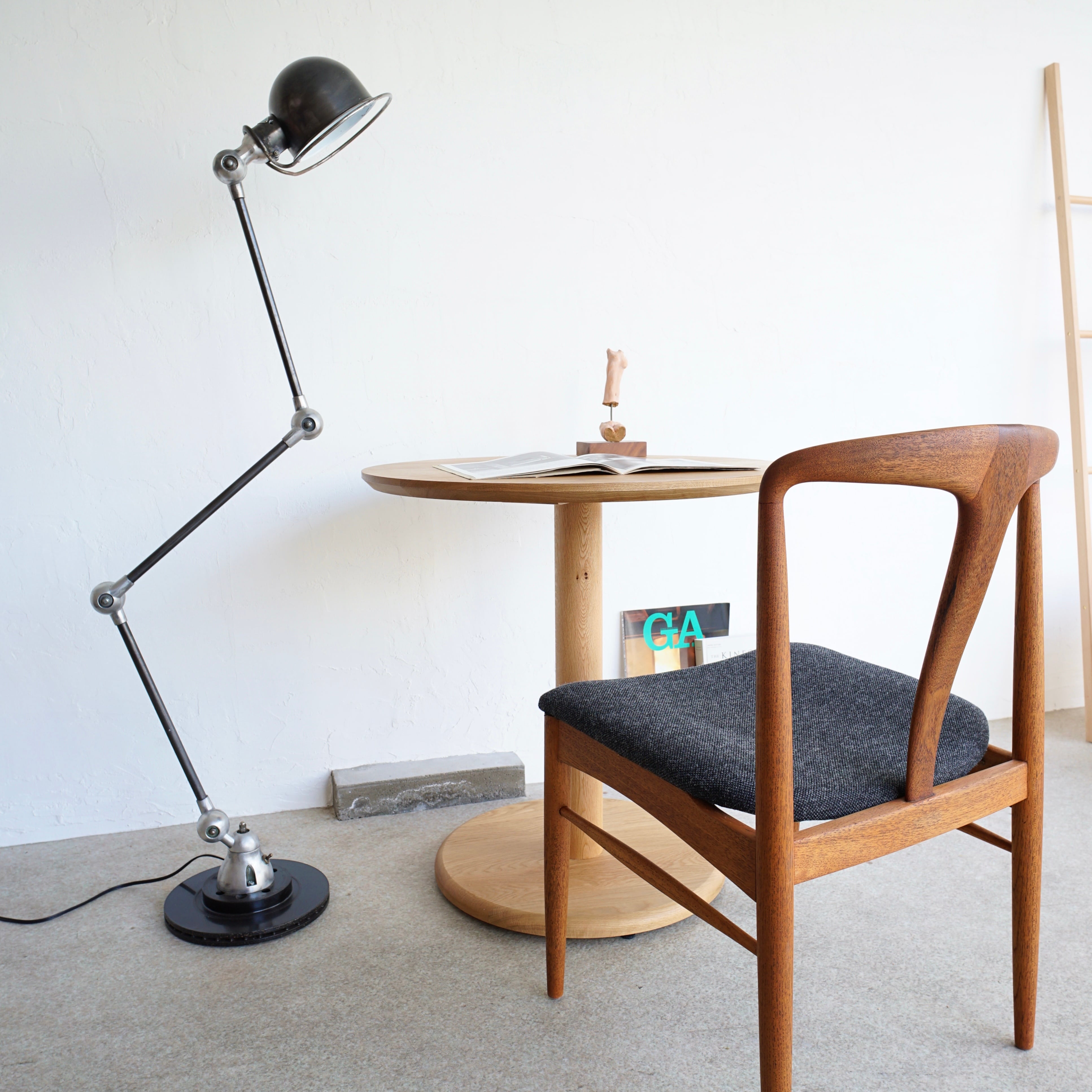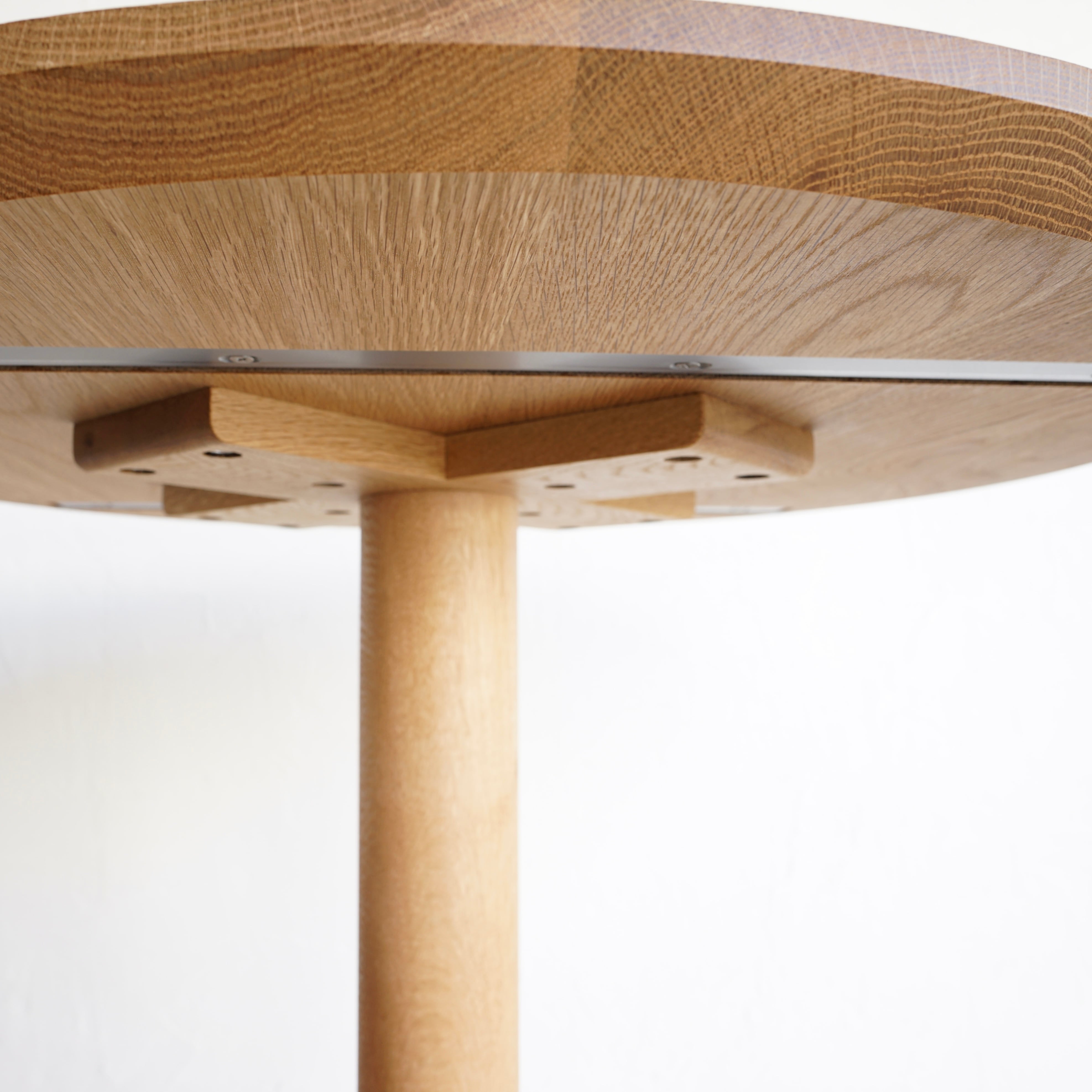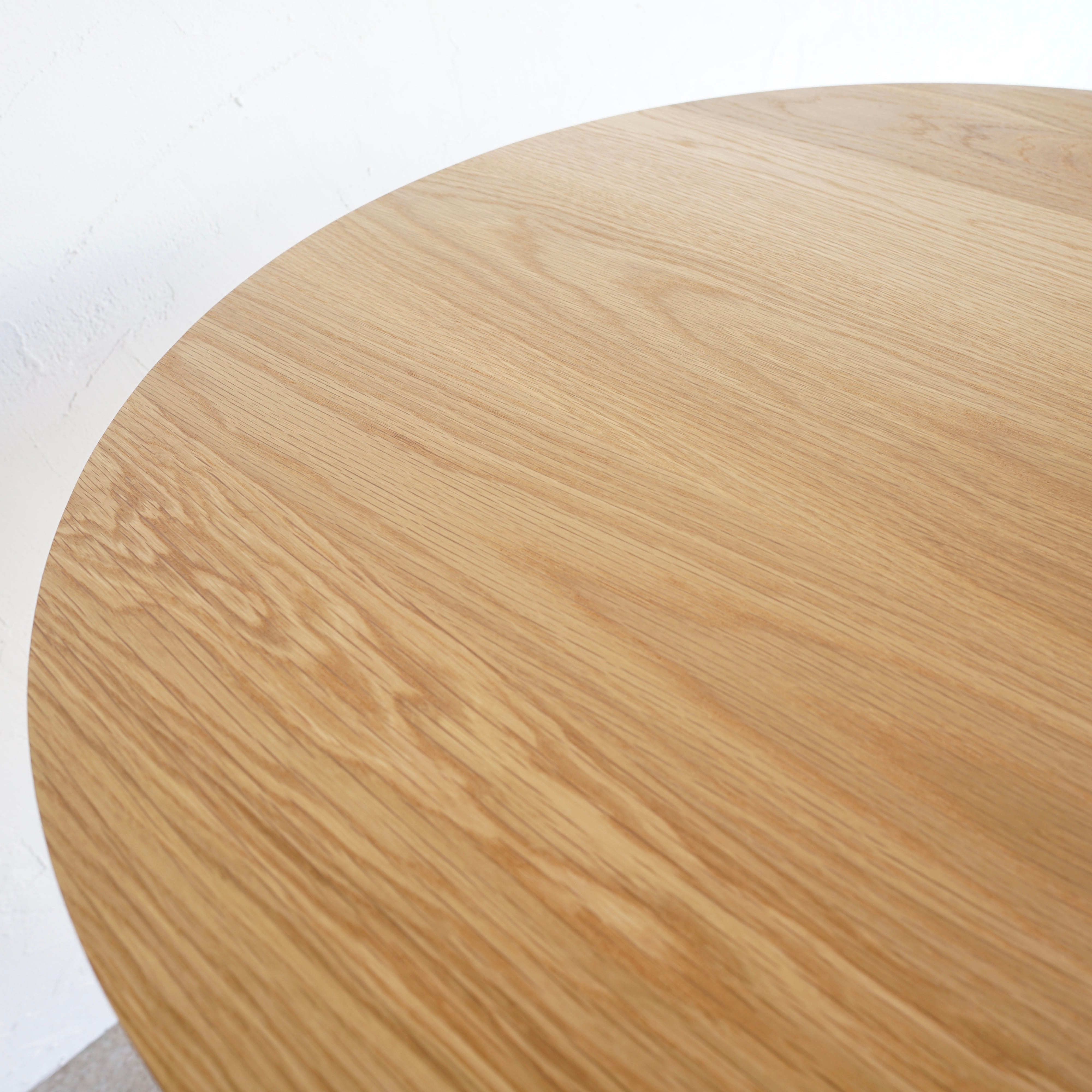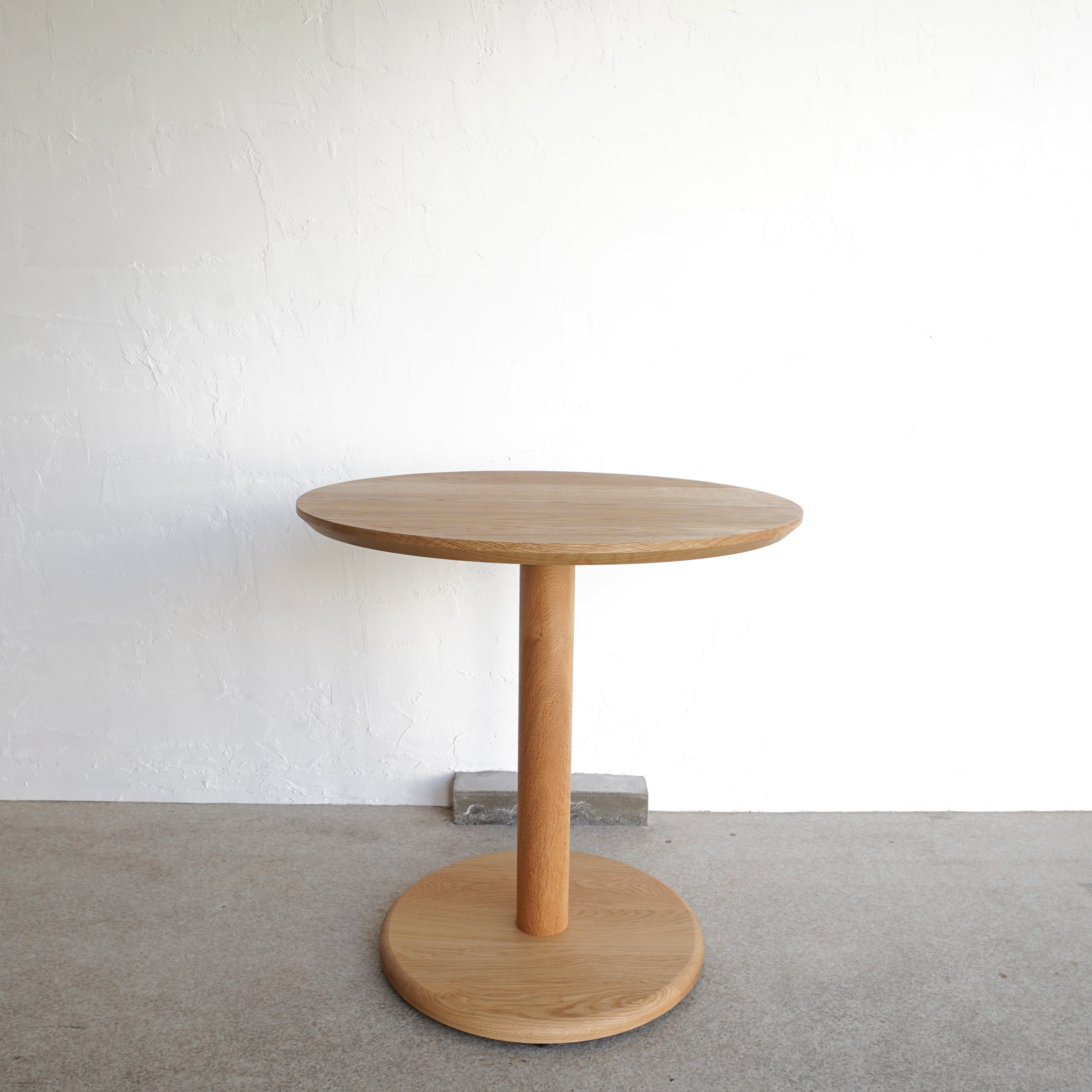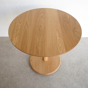 削り出したオーク無垢材の一本脚は、木目や素材感を十分に感じられる、存在感のあるデザイン。