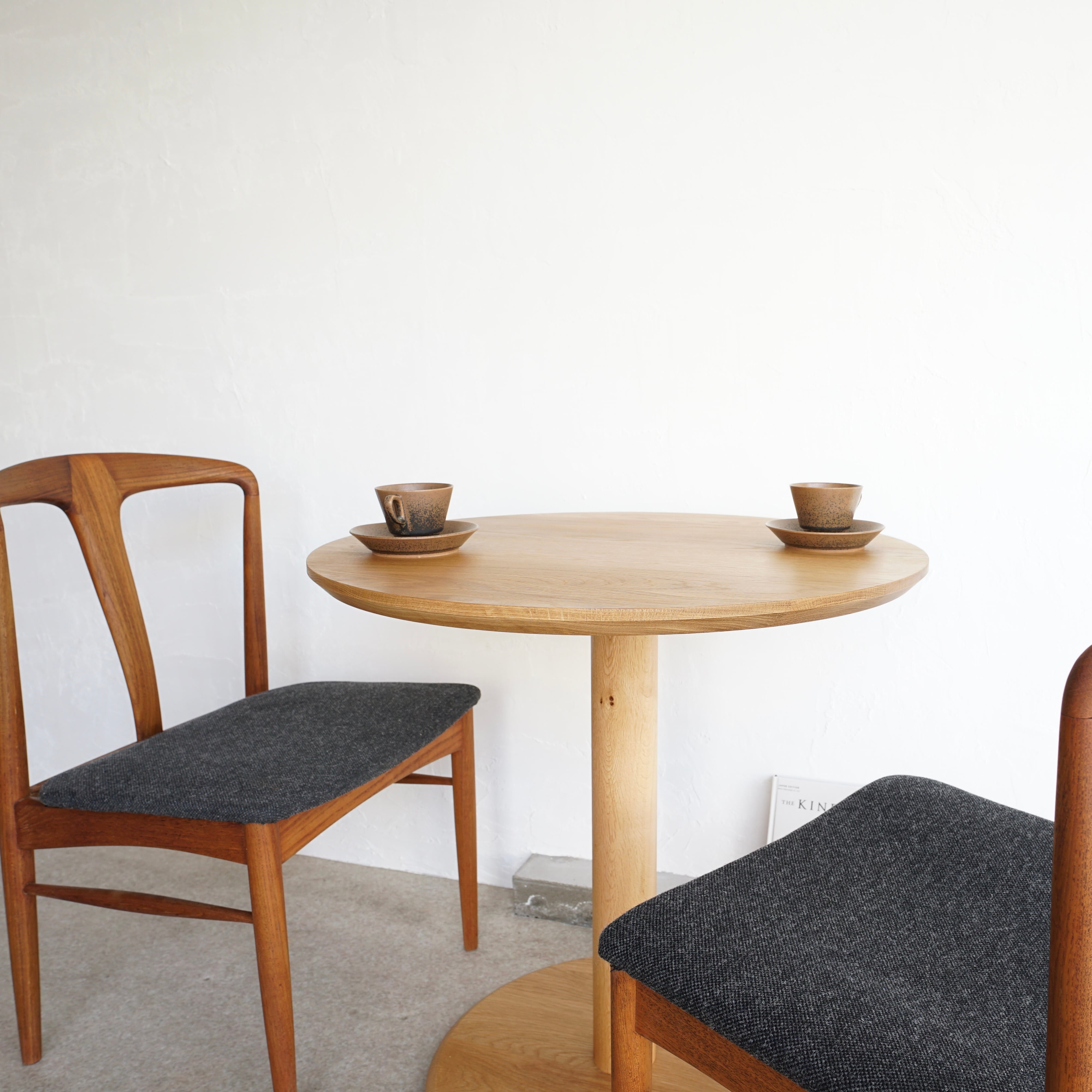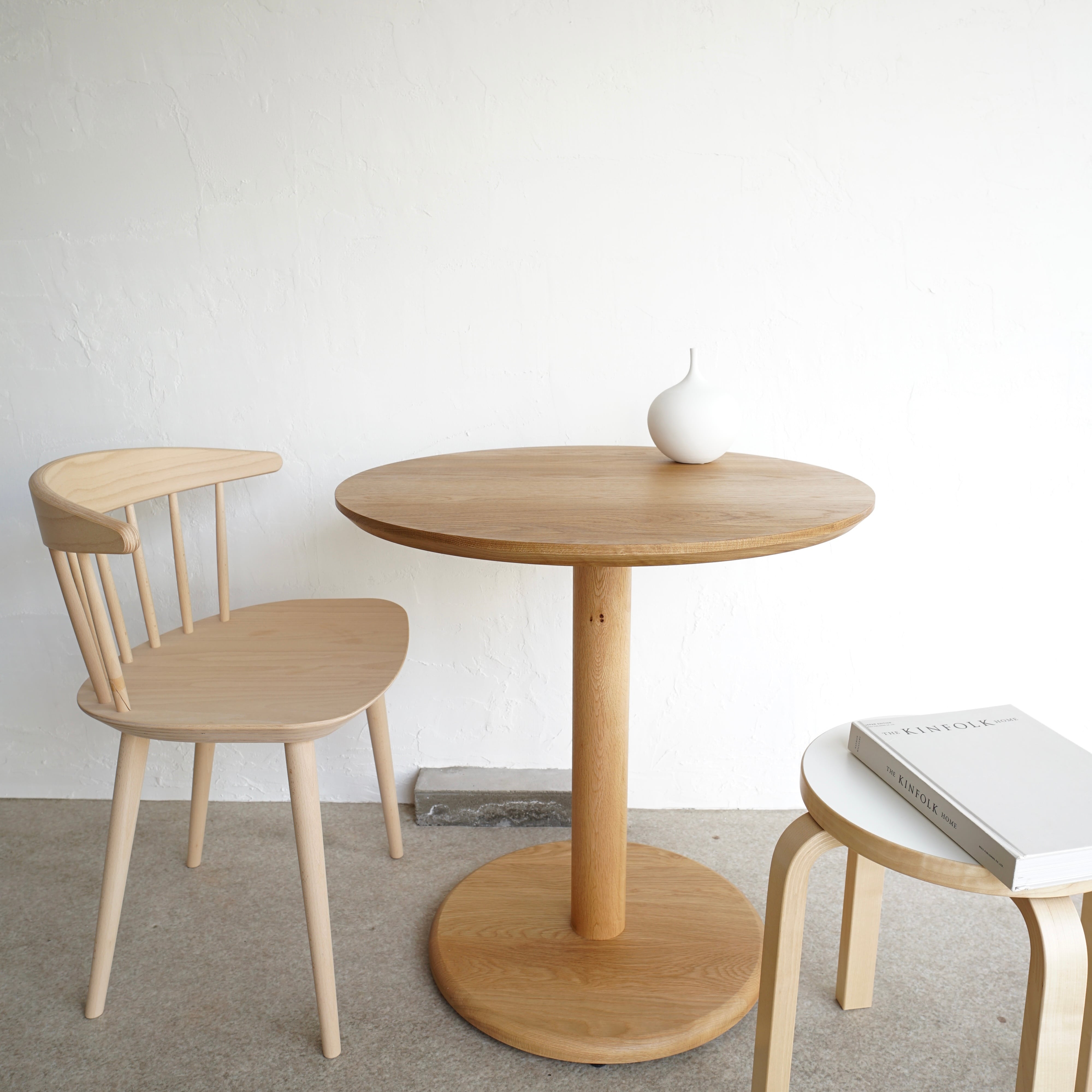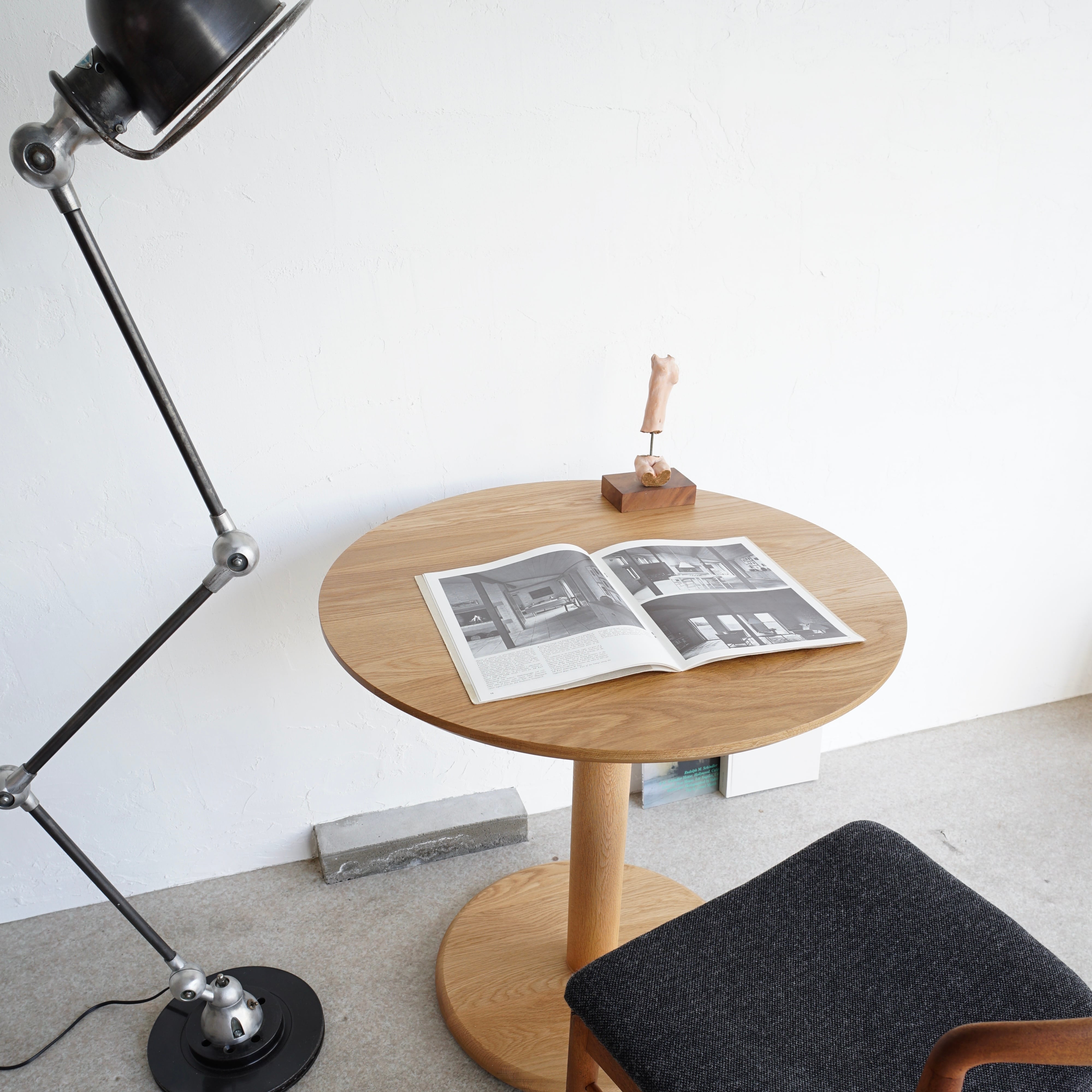 直線的な家具が多くなりがちな空間に、丸い天板がひとつ加わるだけで、お部屋全体の印象はぐっとやわらかくなります。