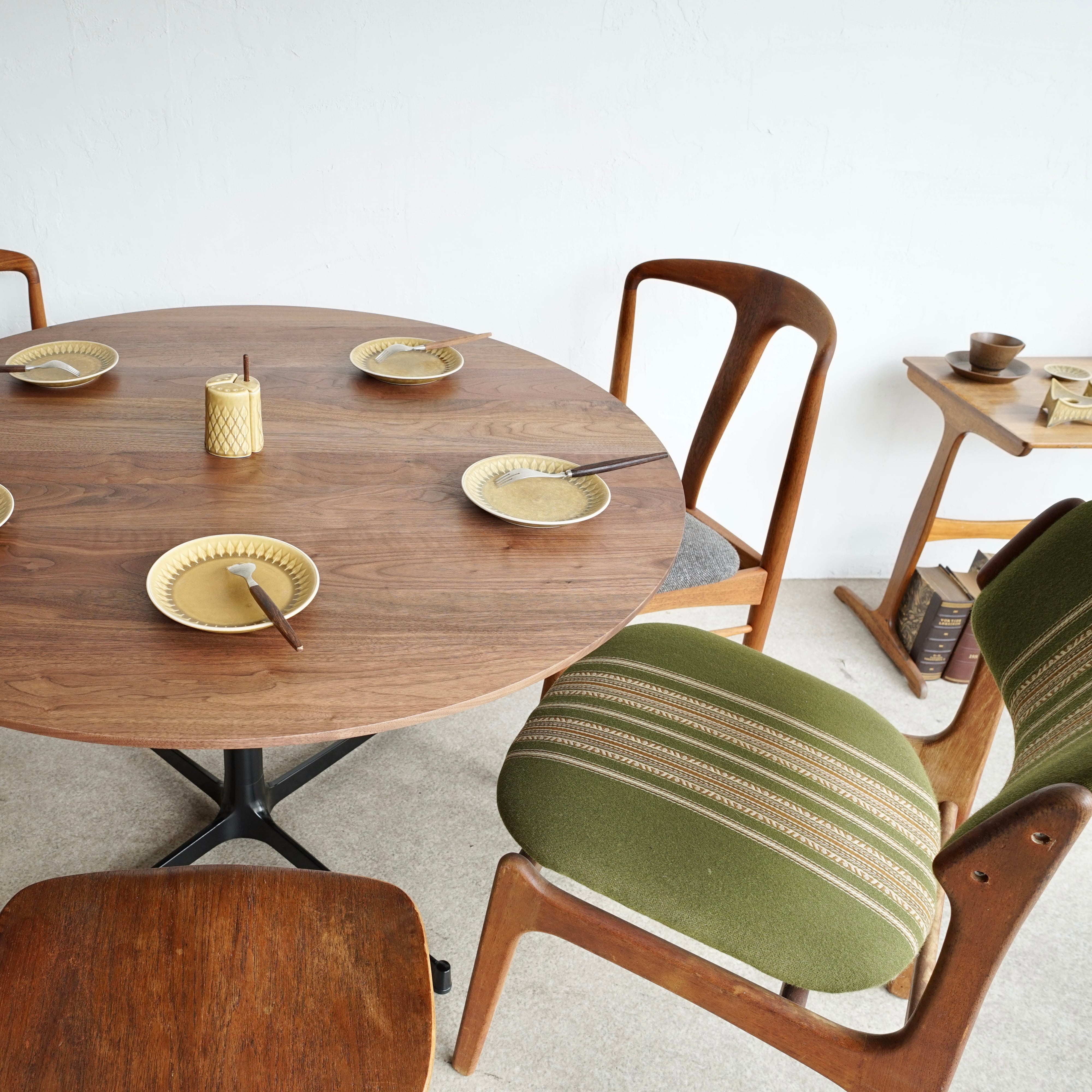 *椅子の配置の自由度が高い一本脚テーブル*